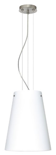 #Besa Lighting Single Light Incandescent Pendant with Satin Nickel Metal Finish from the Torre Collection For over 20 years, Besa Lighting has been creating decorative lighting that features glass in astounding variety. Their sophisticated designs harmonize functional light with design flair. Each glass is handcrafted using traditional methods that have been passed down through generations. The personal experience and artistry of each individual glassmaker is infused into every piece, so natural variations may occur. Small differences in thickness, color, pattern, or dimensions are normal and are part of the essence of handcrafted glass, giving character and distinction to your luminaries. Comes with 10 Feet of Cord Compatible with a dimmer switch Requires one 150 watt Incandescent A21 Bulb (not included) UL Listed: suitable for Damp Locations